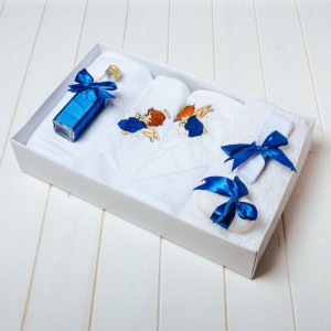 Articolele de botez pentru micii voinici cu albastru si bleumarin sunt ideale pentru biserica avand ingerasul ca tema.