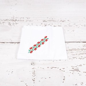 👼 Pânză de mir albă – din bumbac subțire, brodată cu motive tradiționale;