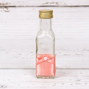 - sticluta de mir frumos decorata cu banda satinata de culoare roz pudra si fundita asortata. Dimensiuni: 15 cm inaltime x 4 cm lungime x 4 cm latime. Capacitate 100 ml.