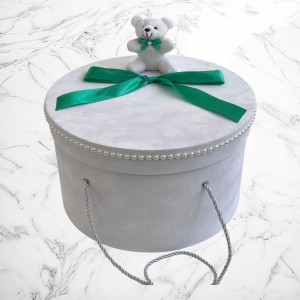 Decor: Manual, cu pampon din tulle, panglică din satin și ursuleț de pluș detașabil