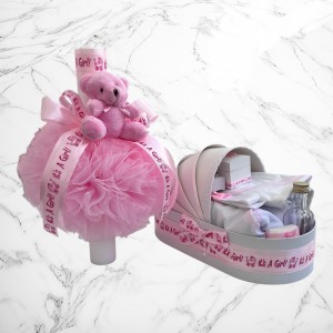 Decor: Manual, cu pampon din tulle, panglică din satin și ursuleț de pluș detașabil