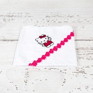 - prosop pentru bebelus cu broderie Hello Kitty. Dimensiuni: 77 x 71 cm.
