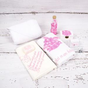 Ceremonia de botez a unei fetite se poate transforma intr-o adevarata sarbatoare daca parintii ei spirituali aleg cu grija trusoul pentru biserica. Decorat cu dantela roz, ingeras brodat si versuri scrise cu litere de mana, fetita va intra in lumea crestina ca o mica printesa.