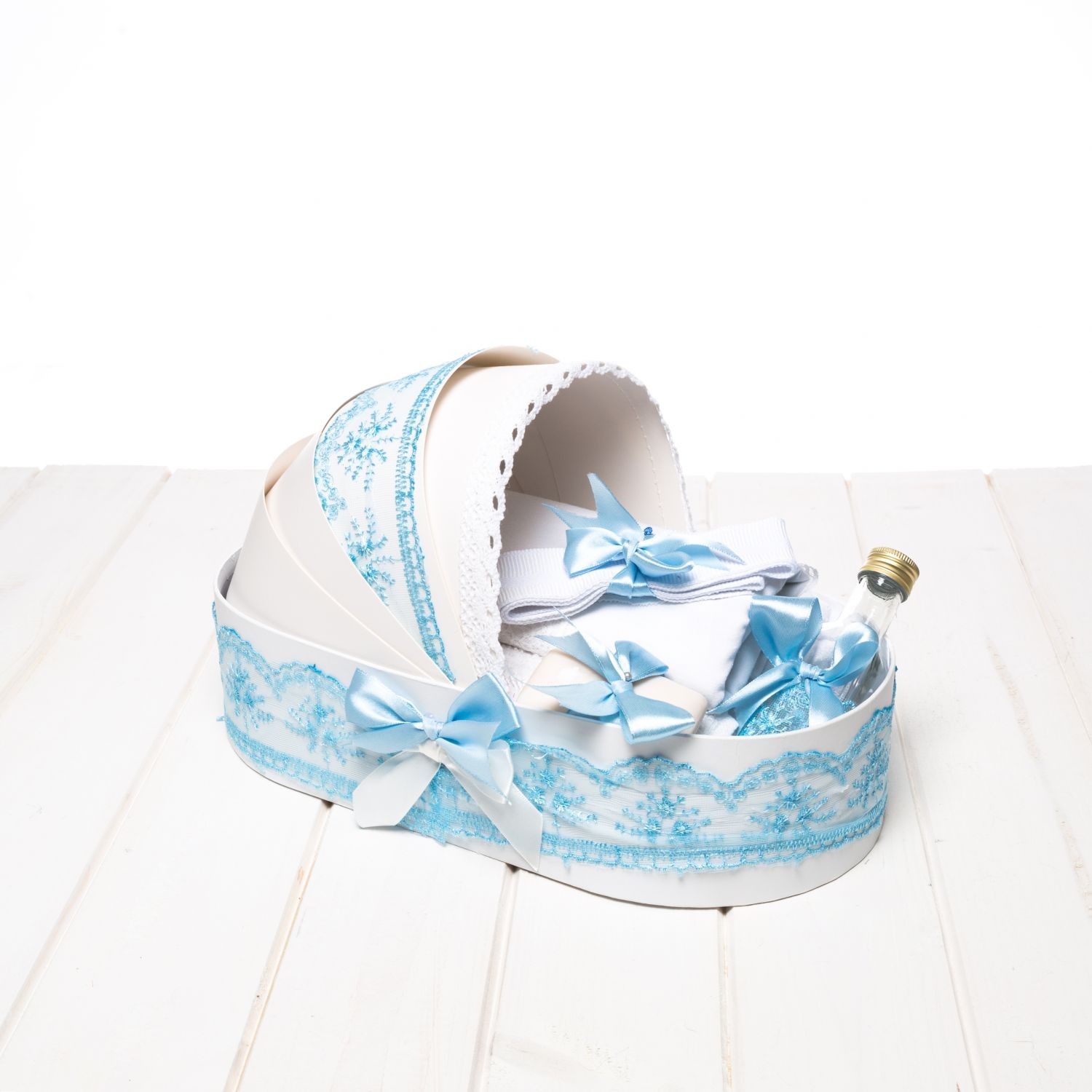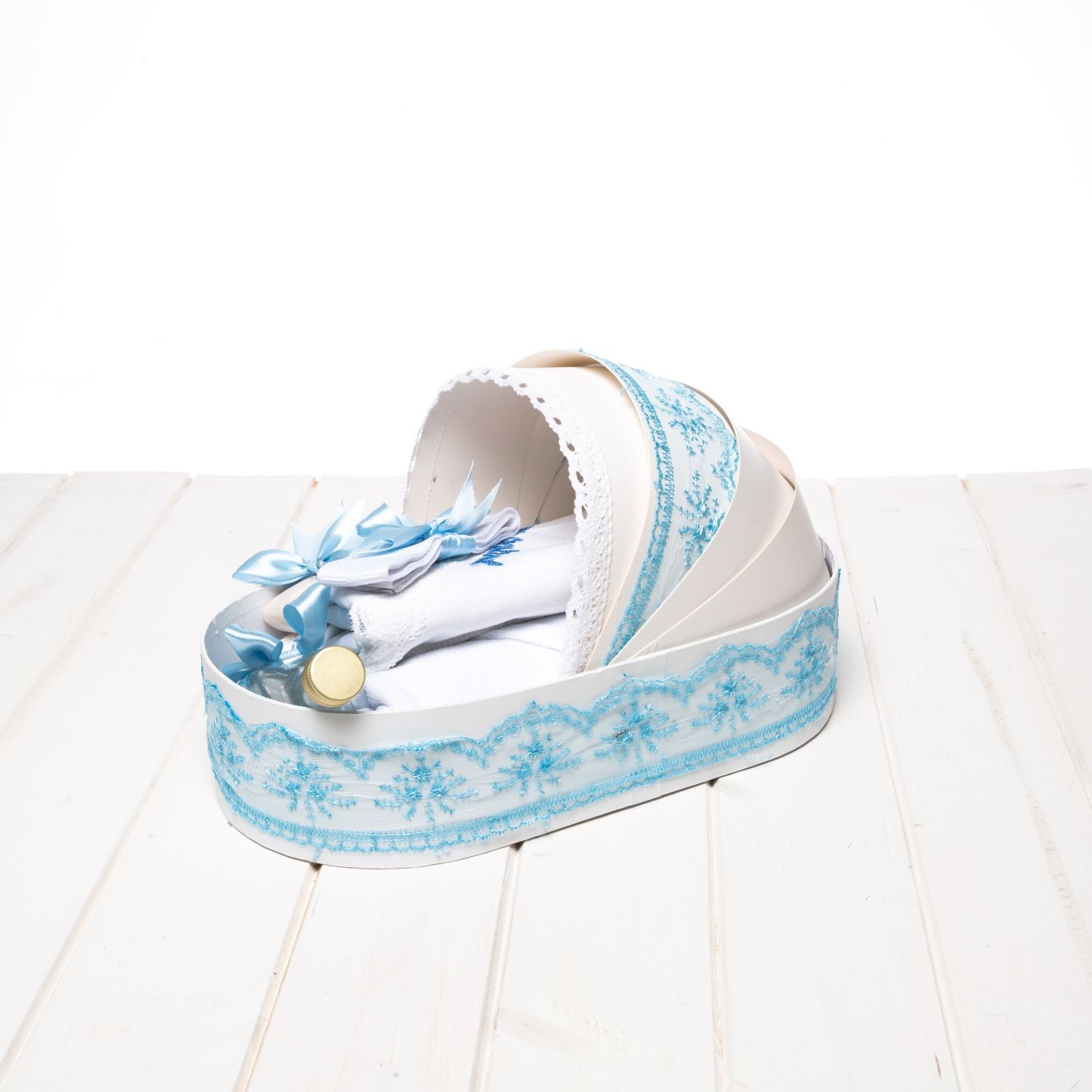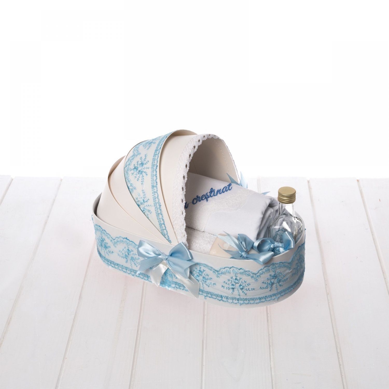 Trusoul botez bleu, ambalat in cutie landou este compus din 7 piese esentiale si anume: