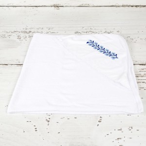 - Prosop bebelus din bumbac moale cu capison. Prosopul are model traditional, iar la baza triunghiului o bordura din dantela alba. 75 x 73 cm