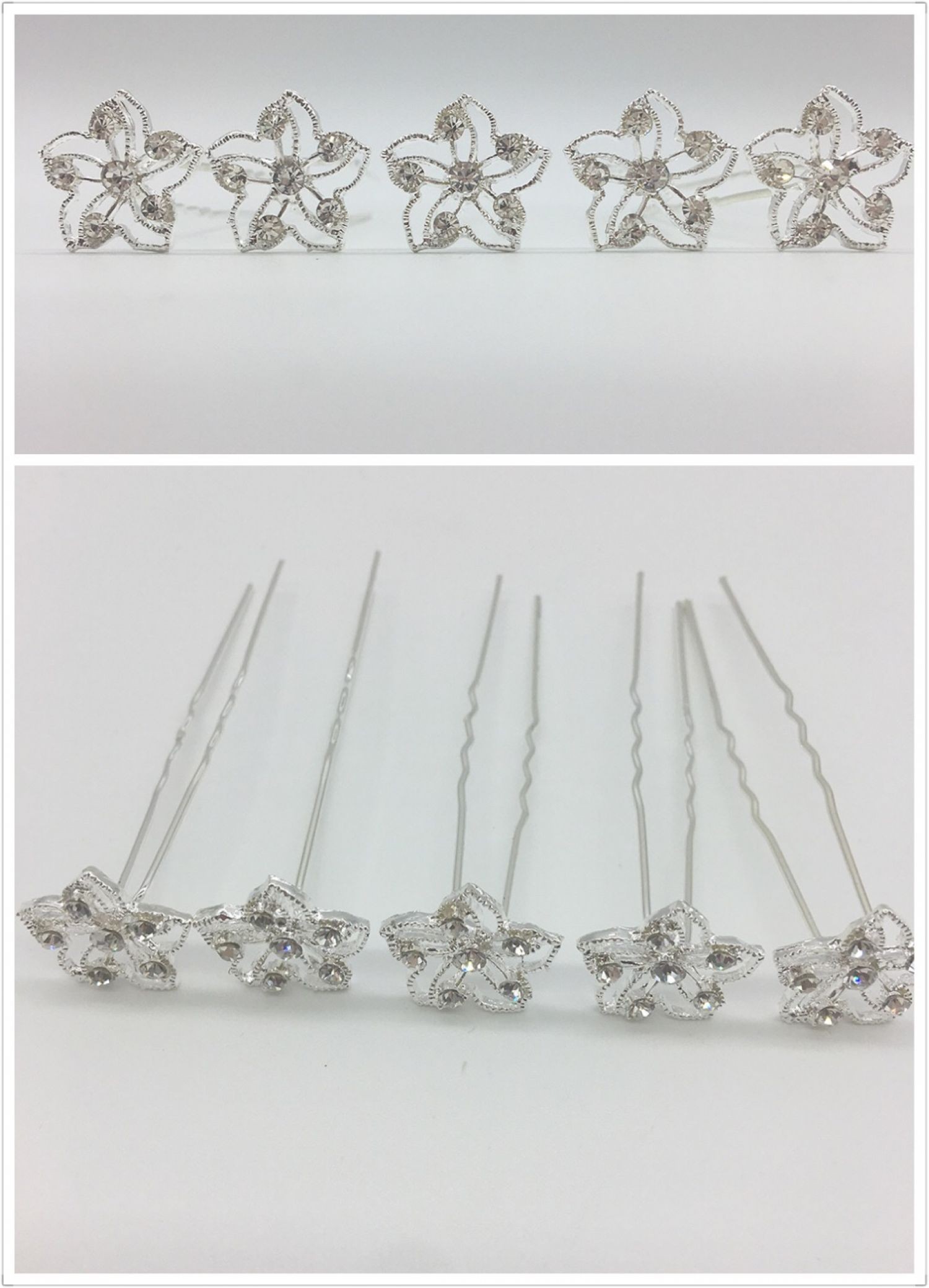 Acele de par model floricele argintii cu cristale sunt acele accesorii mireasa destinate pentru a sustine orice coafura simpla sau sofisticata, de la un coc chignon la o coafura lejera.