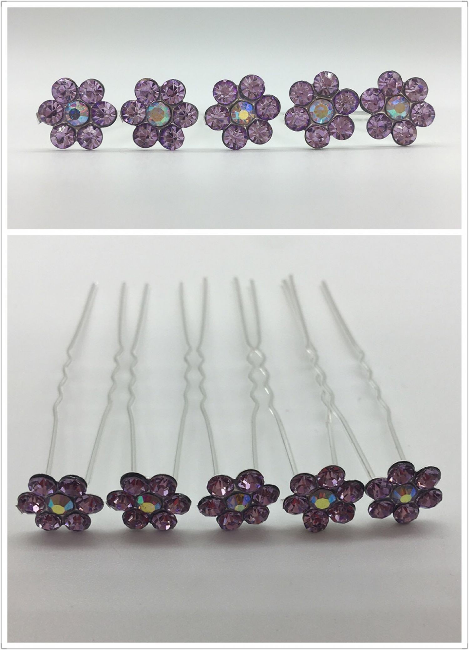 Aceste accesorii dragute sub forma de floricele delicate sunt realizate din otel inoxidabil, in timp ce floricelele au petale mov.