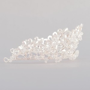 Tiara mireasa Francesca este realizata din metal inoxidabil, de culoare argintie si impodobita cu o multime de elemente glam, cum ar fi pietre strass, cristale si sticla.