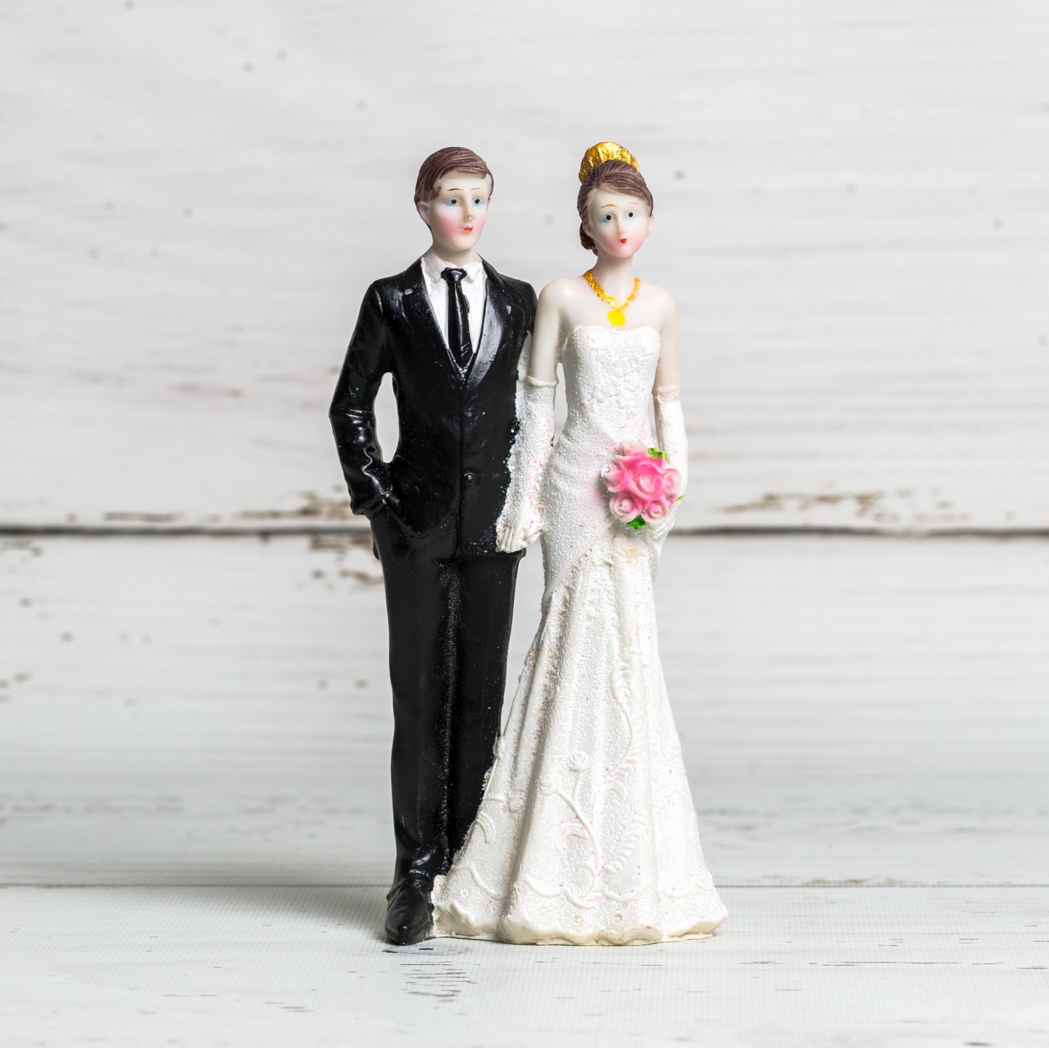 Figurinele de tort care ii infatiseaza pe principalii protagonisti ai nuntii nu se demodeaza niciodata asadar poti folosi pentru decorul desertului vedeta de la evenimentul vostru un ornament tort nunta mire si mireasa.