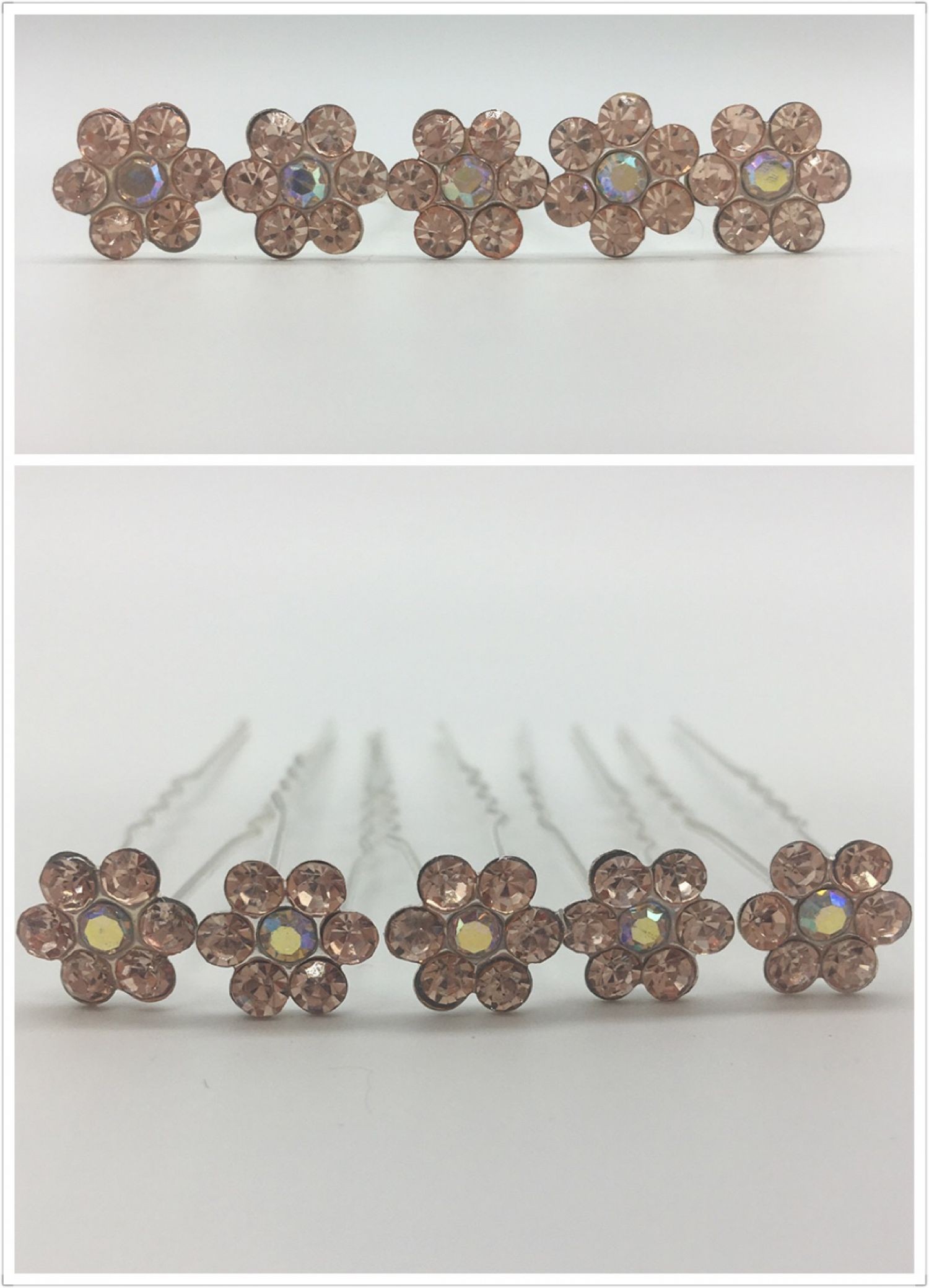 Florile in nuante pastel sunt asociate primaverii, iar tu poti aduce anotimpul verde chiar in parul tau daca alegi sa porti la nunta ace de par mireasa cu cristale in nuante deschise.
