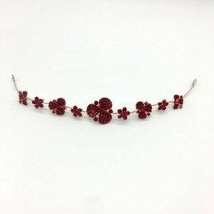 Pentru ca florile sunt gingase, iar cristalele de culoare rosu rubiniu simbolizeaza dragostea, o mireasa delicata si romantica va fi incantata sa poarte la nunta un accesoriu de par cu flori rosii, realizat din metal.
