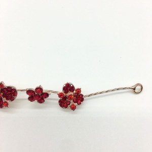 Acest accesoriu par mireasa este format din doua sarmulite impletite de culoarea aurului roze, pe care sunt prinse floricele cu cristale rubinii.