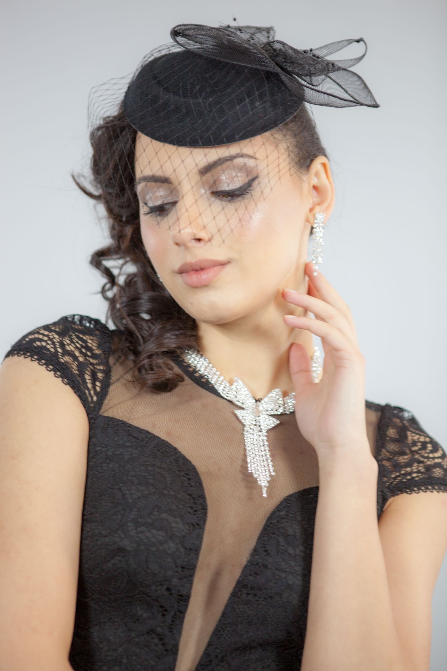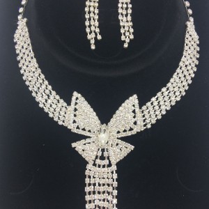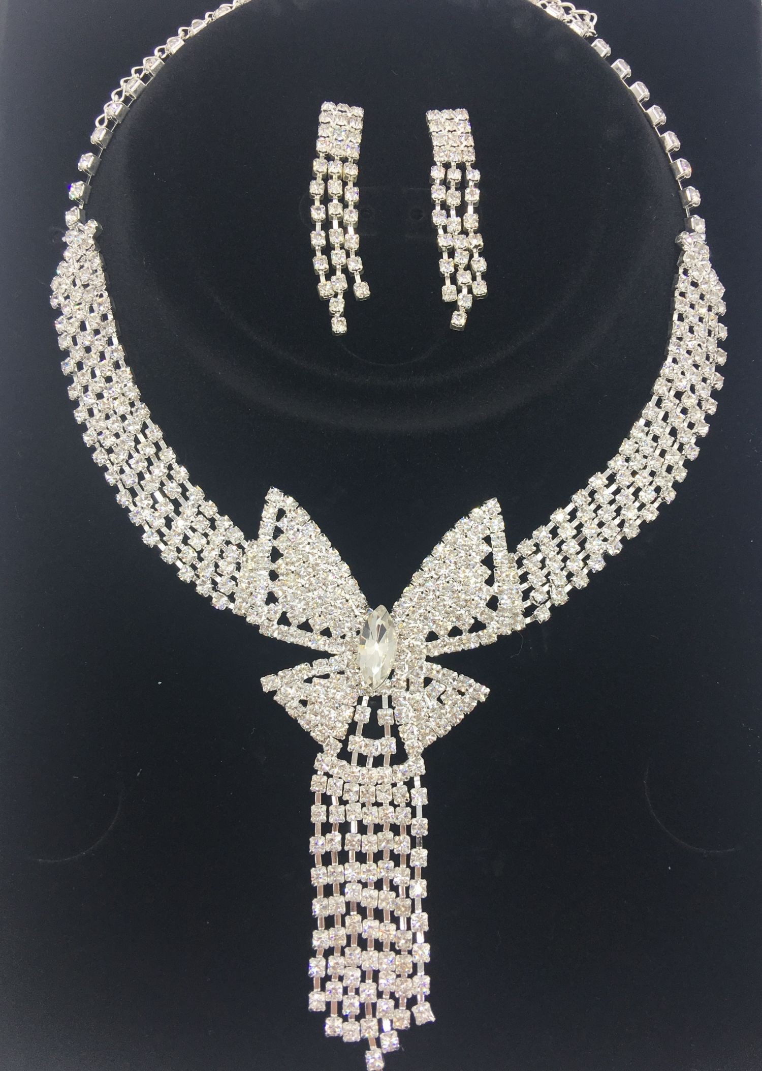 Setul de bijuterii format din colier cu pandantiv fluture si cerceii cu strassuri sunt o alegere spectaculoasa.