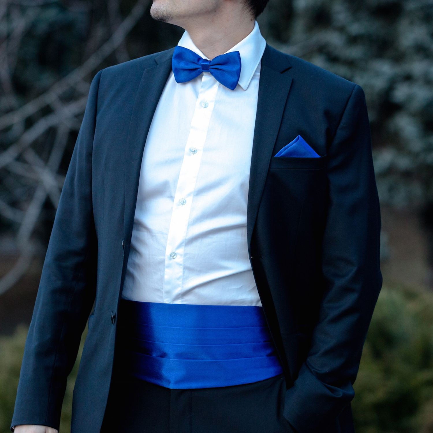 Iesi in evidenta la cel mai important eveniment din viata ta cu ajutorul unui set de accesorii elegante compus din brau, papion si batista.
