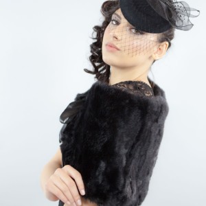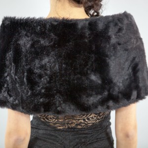 Capa scurta din blana artificiala neagra este un accesoriu calduros pentru o tinuta de ocazie perfecta pentru sezonul rece.