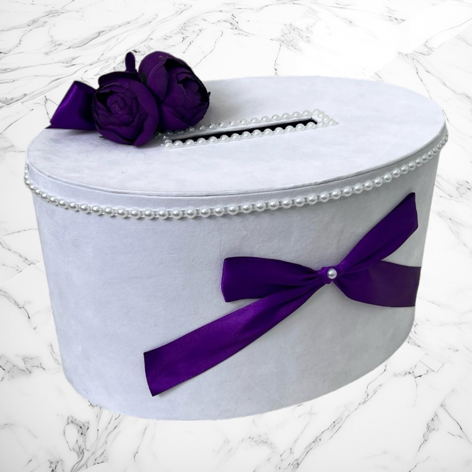 Comanda acum produsul "Cufar bani nunta bujori cu decor mov".