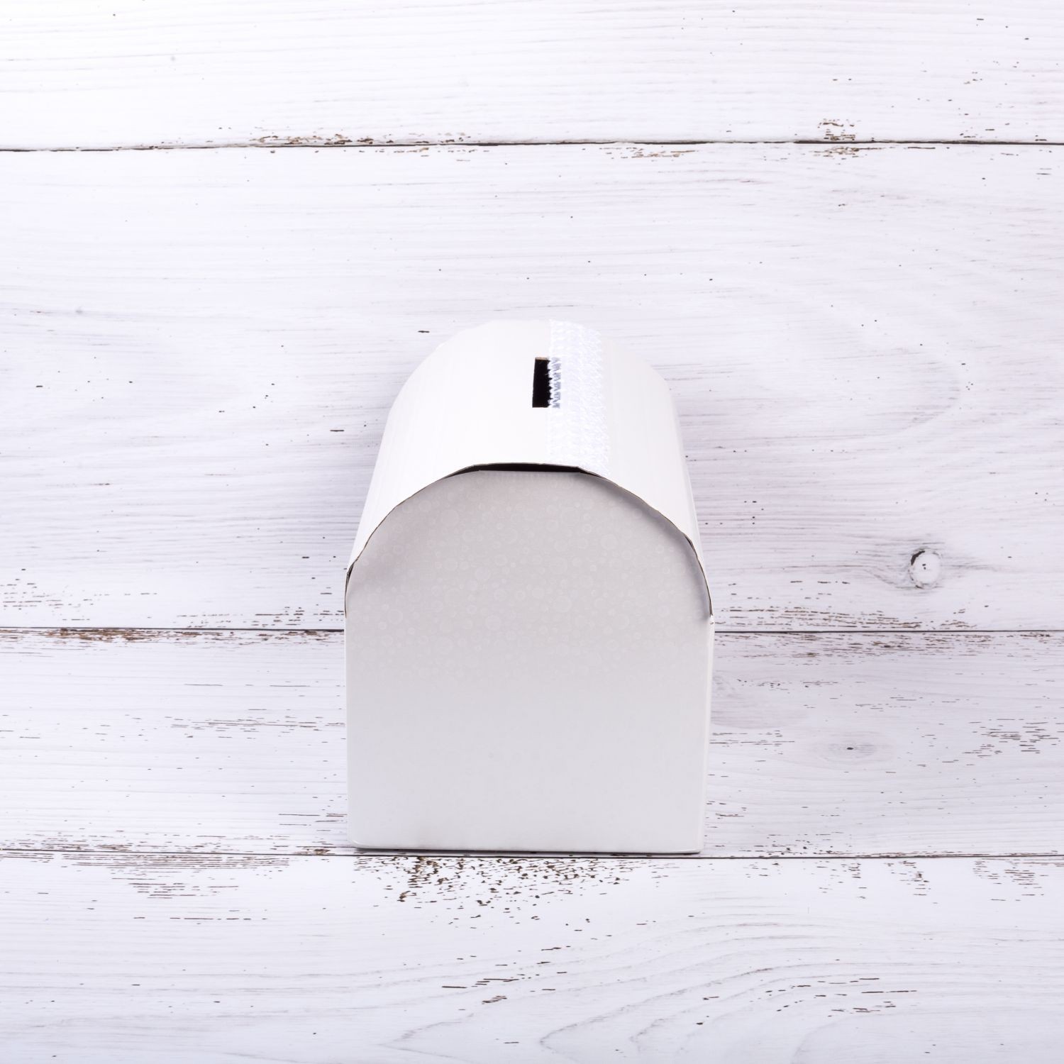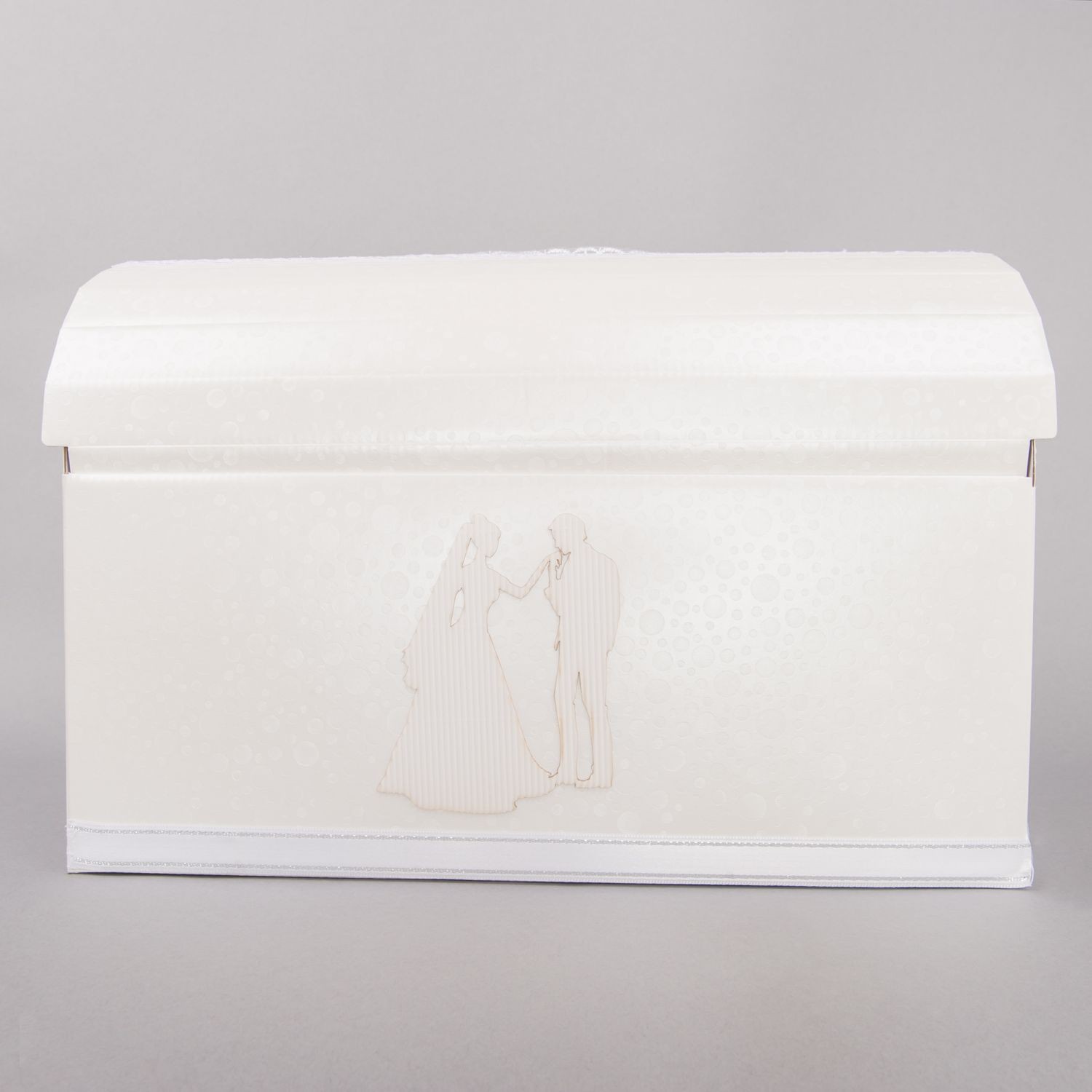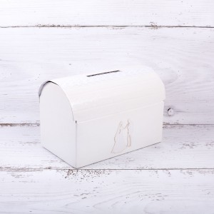 Cufar dar nunta realizat din carton lucios alb cu model cerculete, perfect pentru strangerea banilor.
