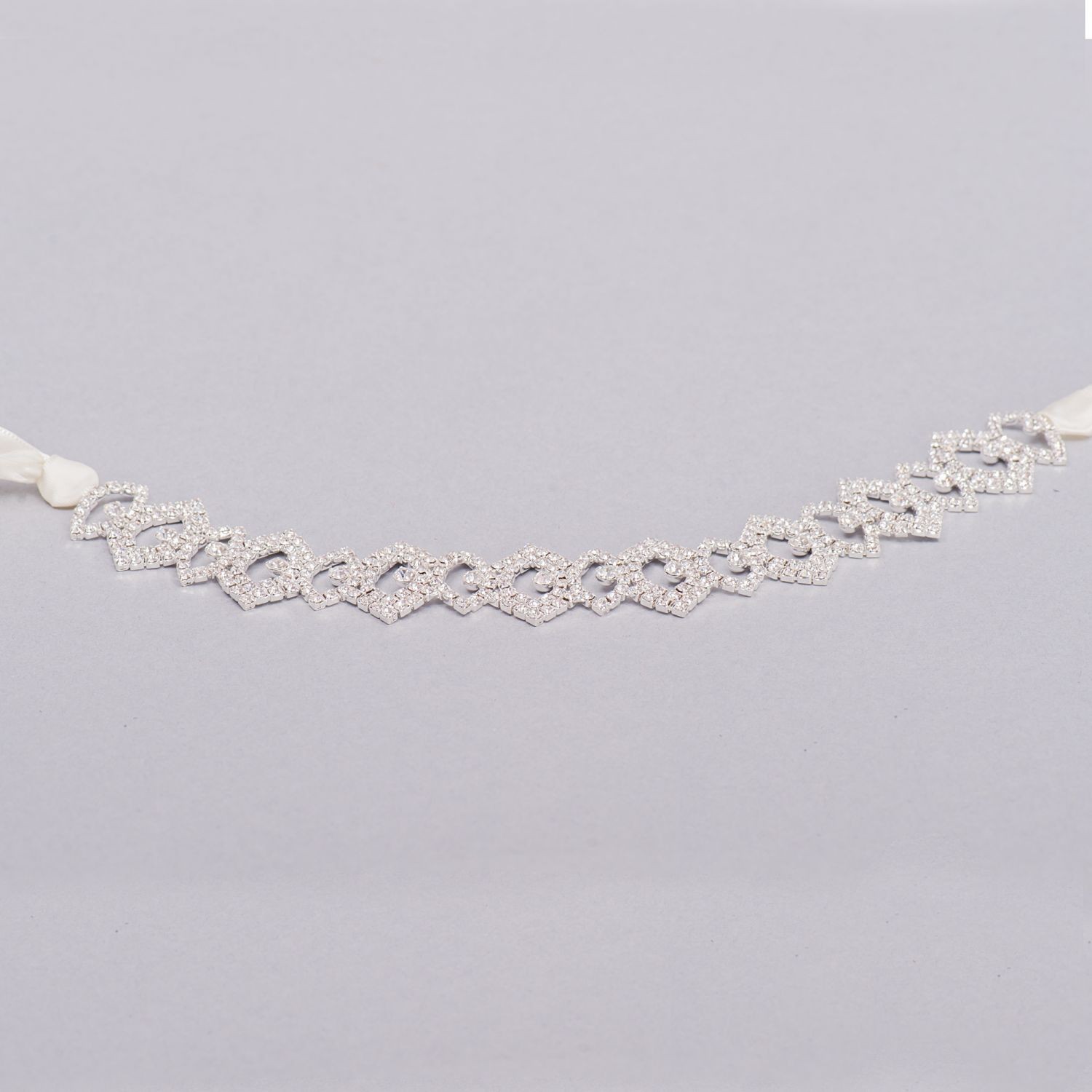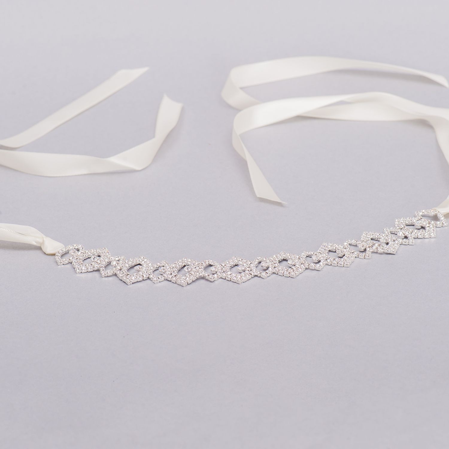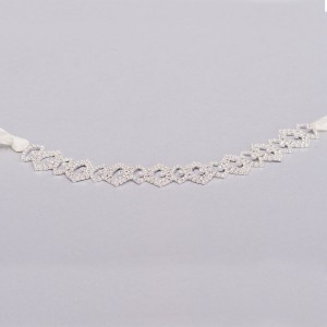 Acest accesoriu deosebit cu suport argintiu maleabil de care sunt prinse zeci de pietricele strass este perfect de purtat la o rochie de mireasa minimalista.
