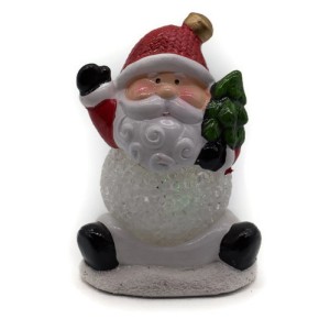 Acest ornament simpatic care il infatiseaza pe Mos Craciun ducand un brad verde poate veghea somnul celor mici daca este lasat aprins.