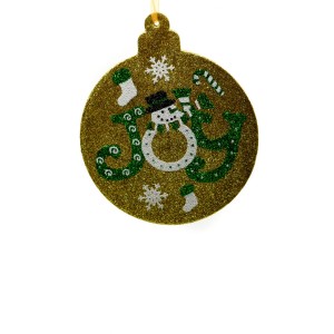 O decoratiune de brad simpatica, ce nu trebuie sa lipseasca din pomul de iarna este globul auriu Om de zapada imbracat in sclipici.