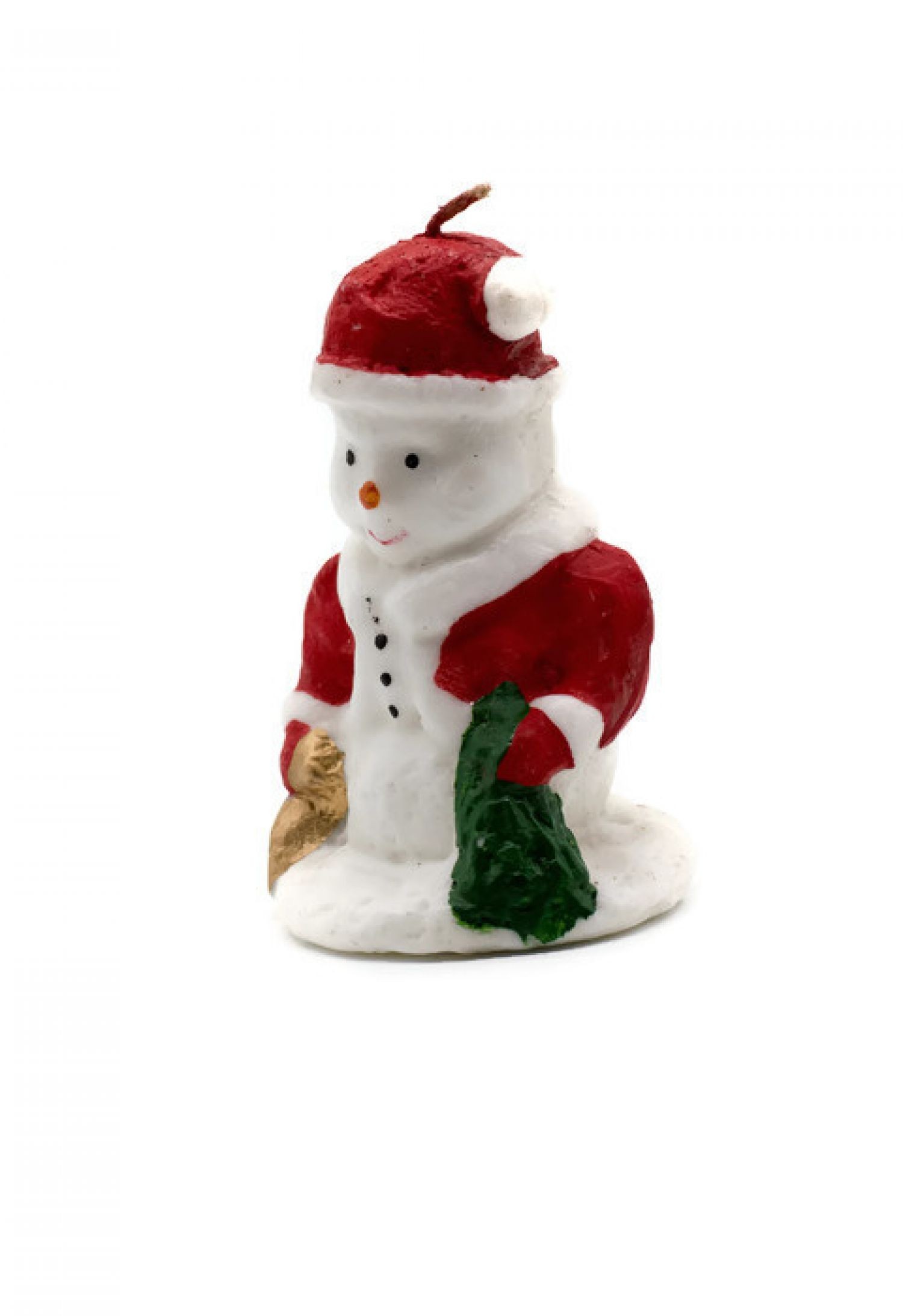 Lumanarea are chipul unui urs polar simpatic, imbracat cu haina rosie, manusi si fes in acelasi ton.