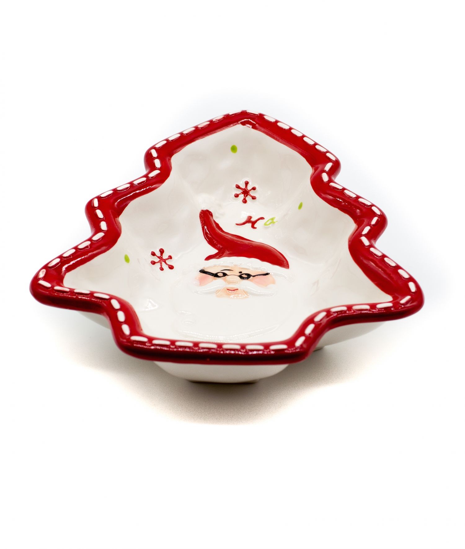 O sugestie de cadou pentru ultima luna a anului este farfuria de Craciun sub forma de bradut si decorata in interior cu capul lui Mos Craciun.