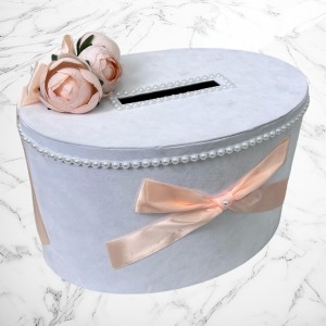 Comanda acum produsul "Cufar bani botez bujori cu decor peach fuzz".
