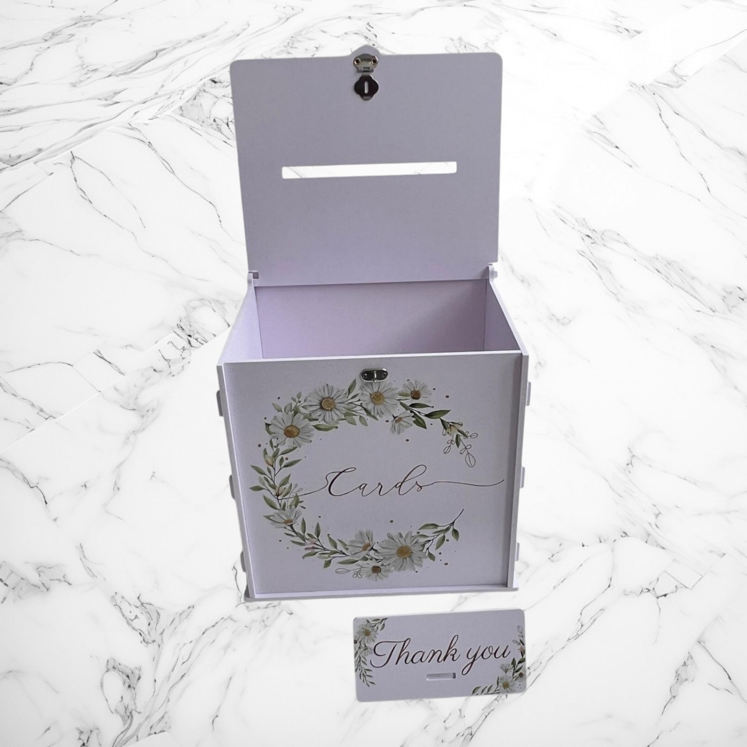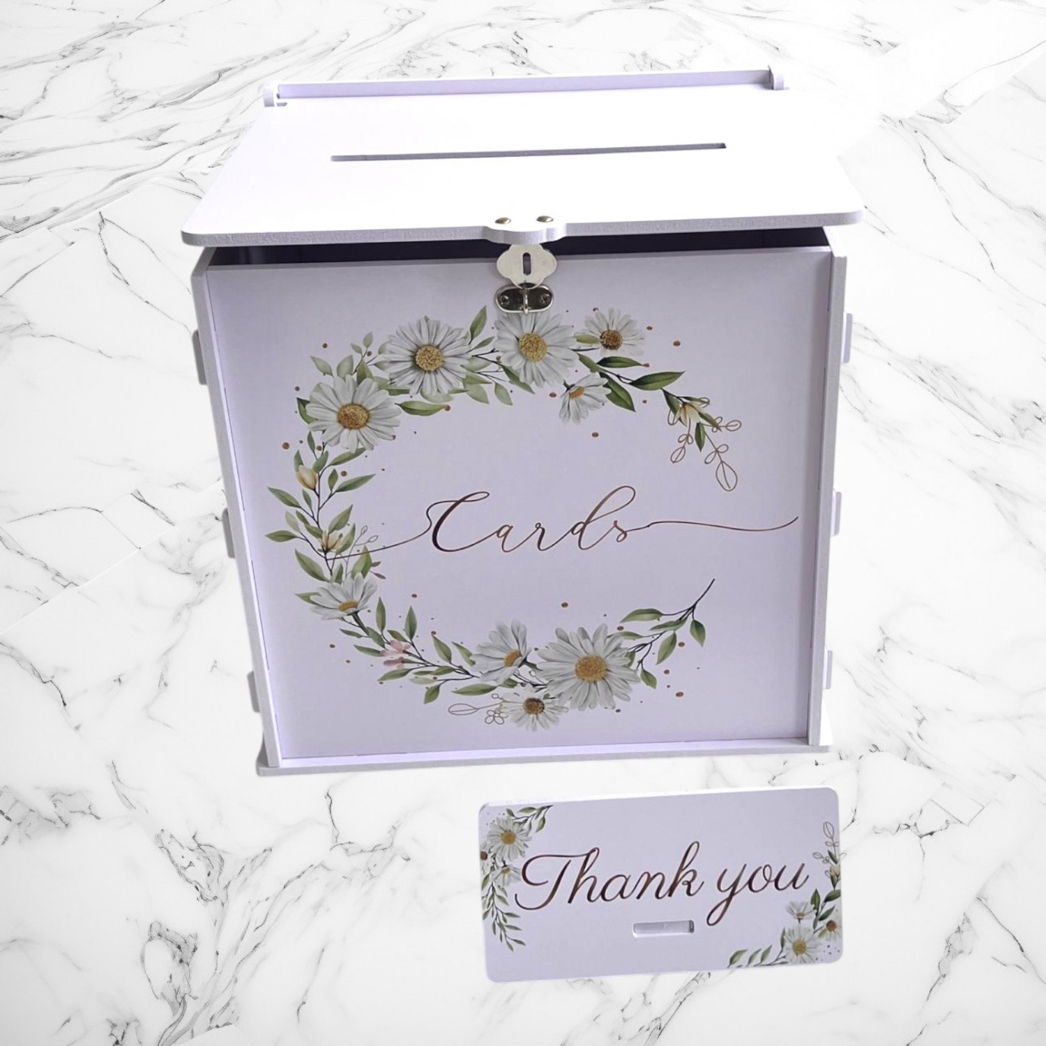 Completează decorul botezului tău cu această cutie pentru daruri și felicitări 💌, cu un design floral delicat, perfectă pentru un botez de poveste!