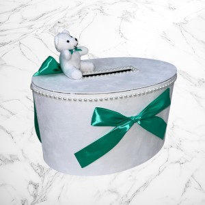 Comanda acum produsul "Cutie de dar cu ursulet plus si funde verde menta".