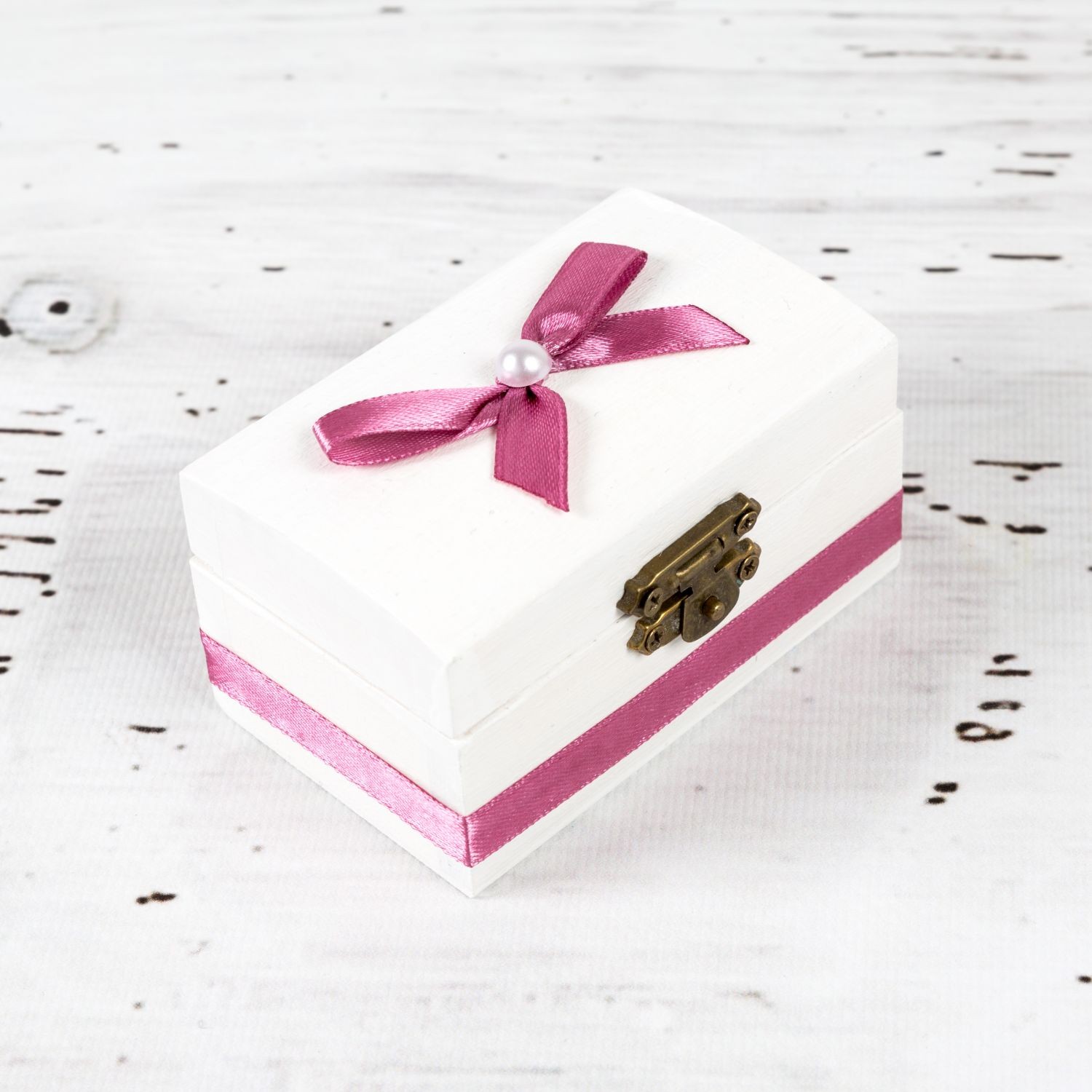 Parul fetitei de la botez, alaturi de suvita taiata de catre nasa la petrecerea de ruperea turtei/taierea motului poate fi pastrat intr-o cutiuta eleganta din lemn cu decor banda si fundita roz prafuit.
