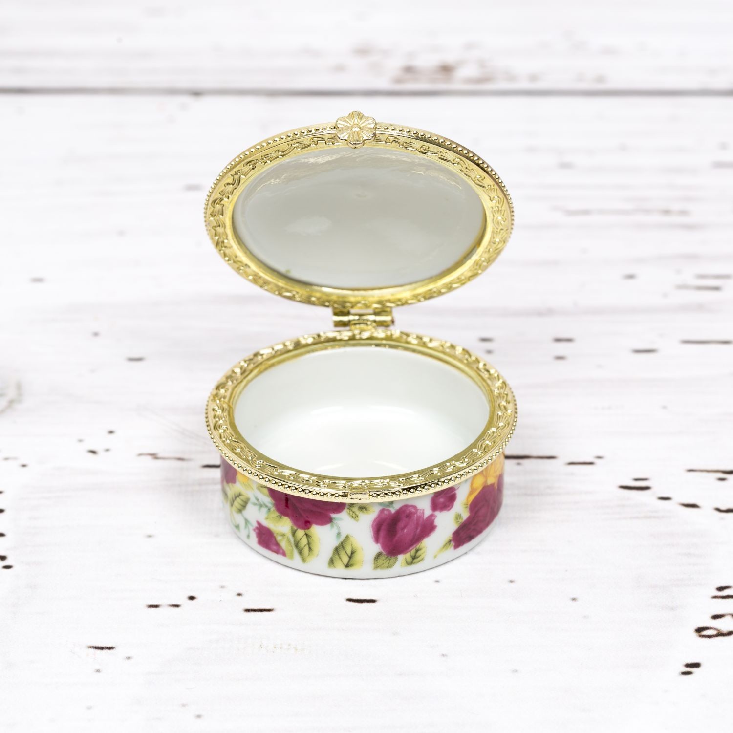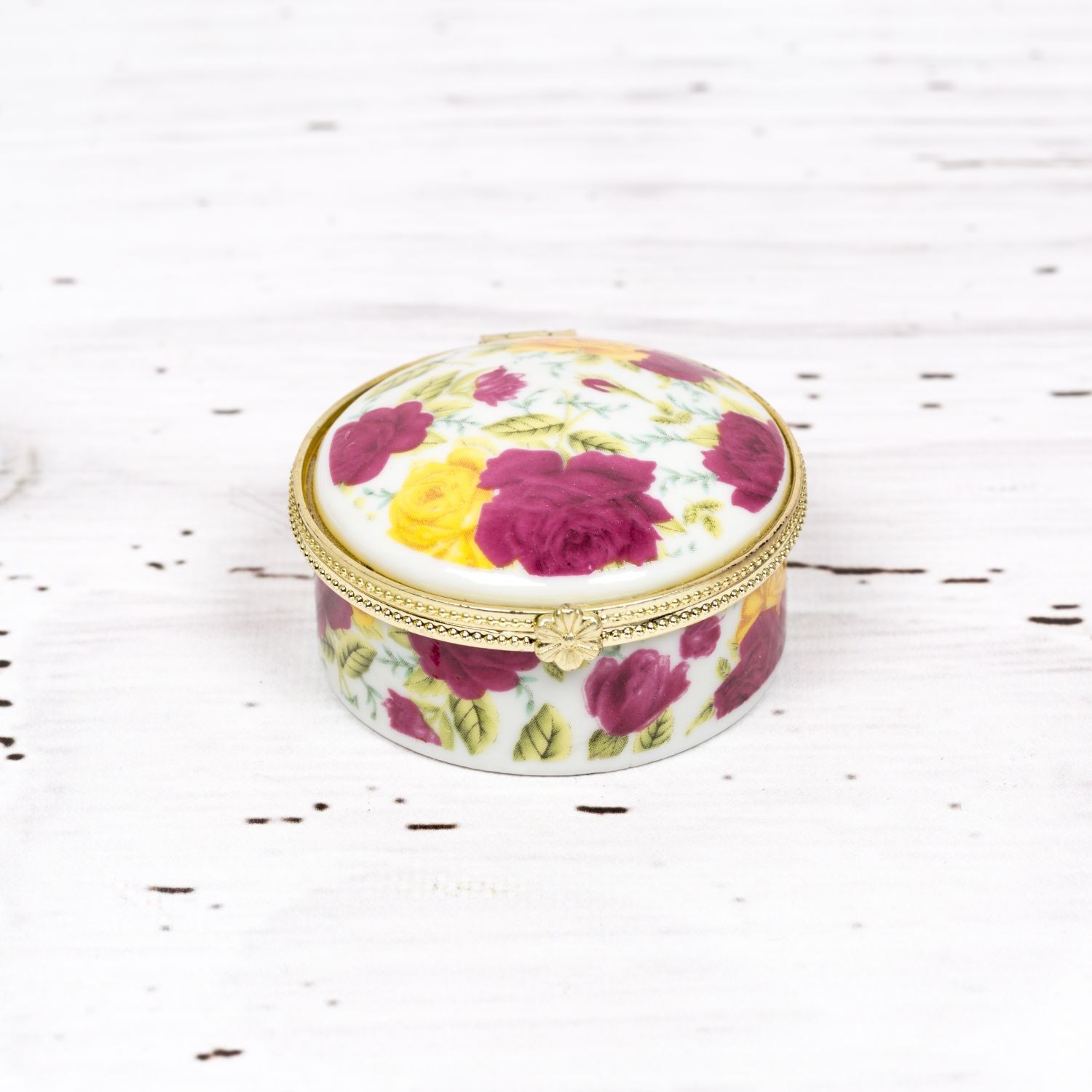 Cutia rotunda din ceramica cu model floral este potrivita pentru prima suvita a bebelusului. Aceasta poate fi pastrata si ca piesa de mobilier.