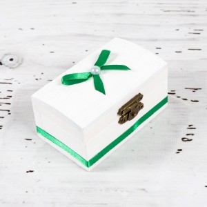 Cutiuta pentru mot botez cu decor verde este un accesoriu practic si elegant pentru primul eveniment important din viata unui baietel.