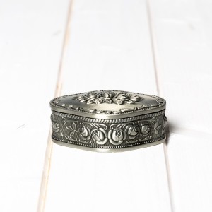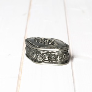 Cutiuta este realizata dintr-un material numit antimoniu si are interior din catifea neagra.