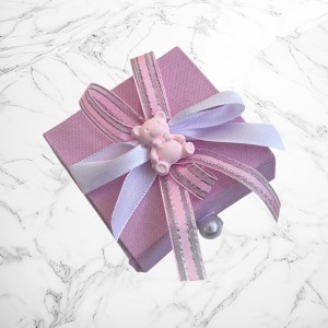 Culoare: roz deschis, cu fundiță albă și roz cu fir argintiu