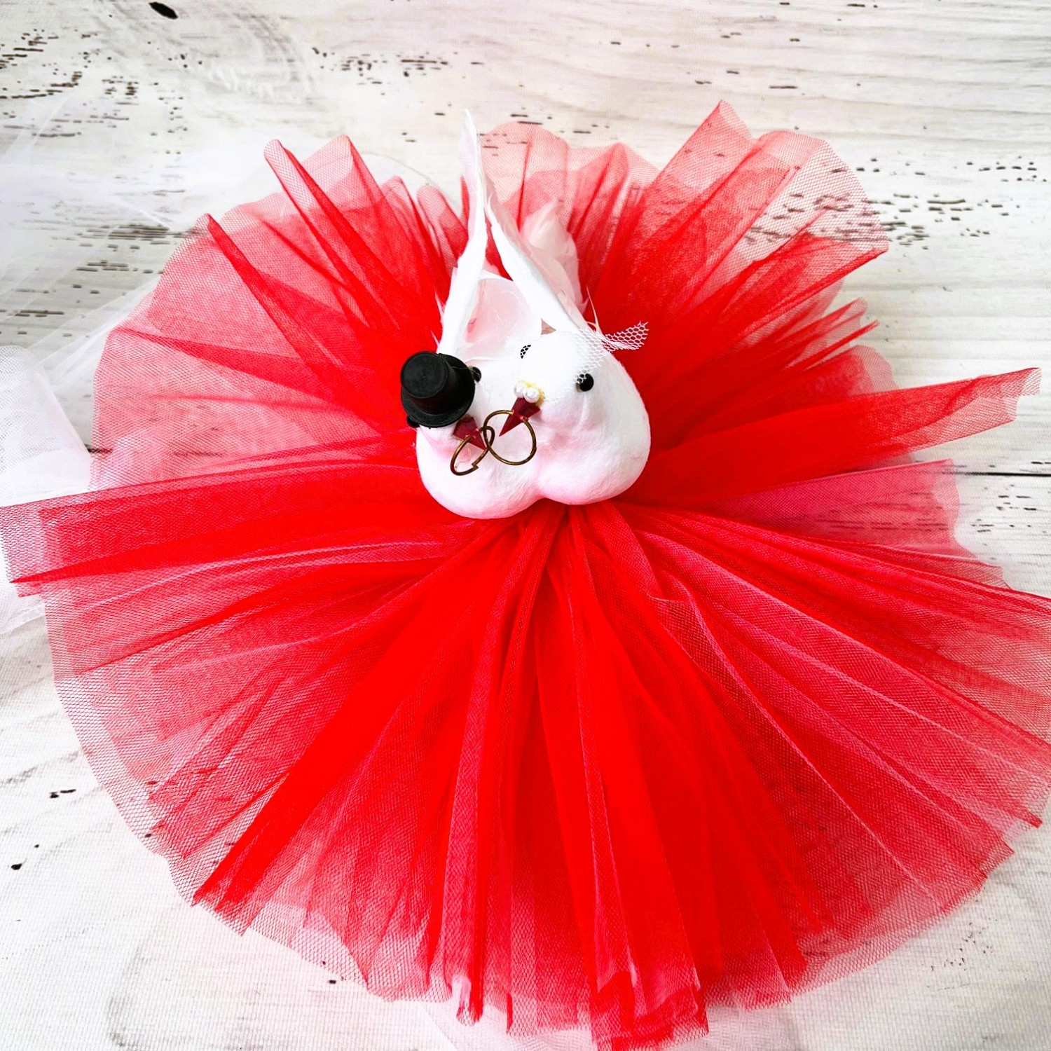 Accesorizeaza masina mirilor cu un decor cu porumbei rosu cu pene asezati pe straturi de tulle turcoaz si vei atrage atentia instant la nunta ta.