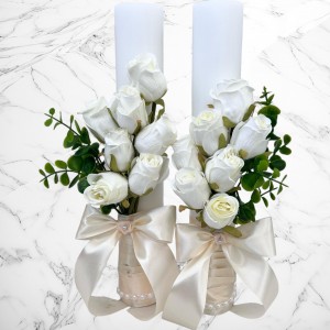 Aceste lumanari sunt decorte cu trandafiri artificiali ivory si fundita ivory.