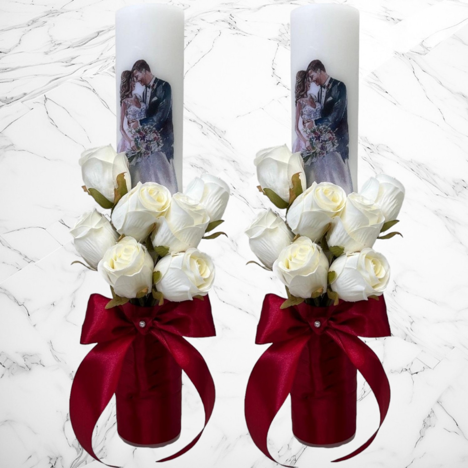 Comanda acum produsul "Set lumanari nunta miri pictati cu decor grena".