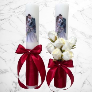 Comanda acum produsul "Set lumanari nunta miri pictati cu decor grena deschis".