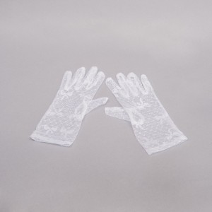 Iti plac manusile scurte din dantela alba cu model? Atunci noi iti propunem sa asociezi rochia de mireasa cu manusi transparente cu model cu fundite. Arata cu adevarat special!