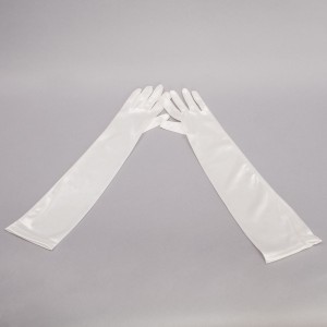 Daca iti plac accesoriile de mireasa simple, nu ezita sa comanzi aceste manusi lungi pana la cot.
