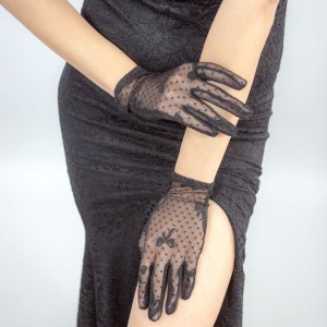 Manusile de ocazie scurte din dantela neagra cu model romburi si fundite sunt ideale pentru ceremonie, petreceri, dar si momente solemne.