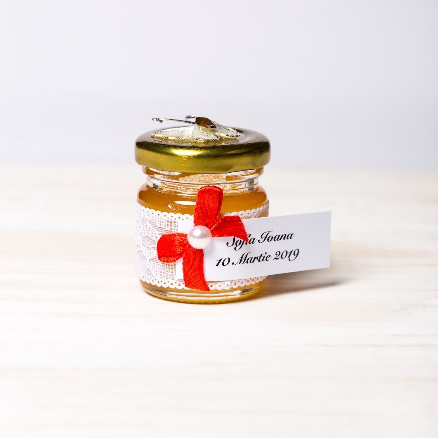 Pentru ca parintii unui ingeras ce urmeaza sa fie botezat doresc ca fiul sau fiica lor sa aiba o viata dulce ca miere, acestia pot organiza un botez cu meniu traditional la care sa ofere invitatilor borcanele umplute cu miere si decorate cu festiv cu dantela alba, fundita rosie cu perluta in mijloc si fluture alb pe capac.