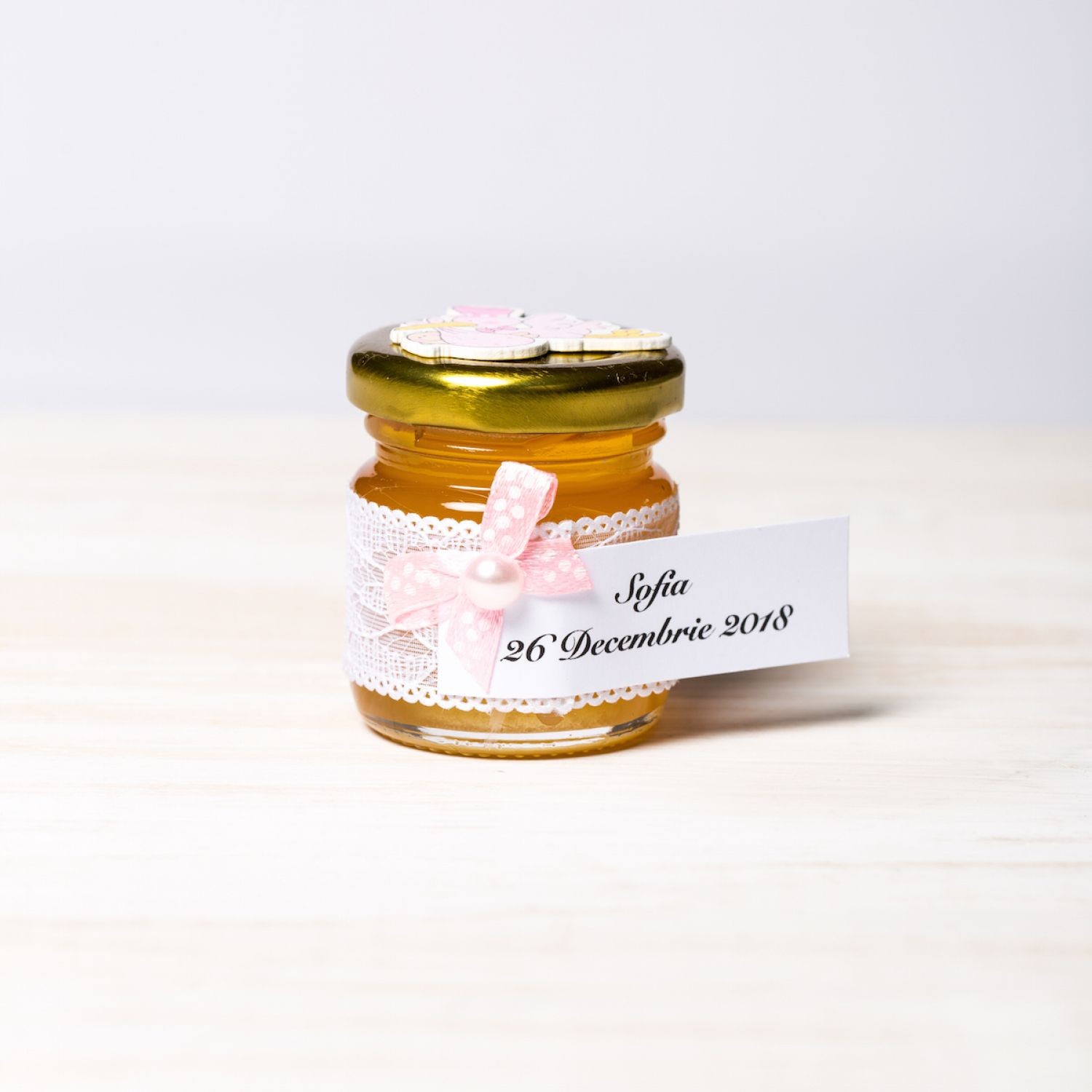 Personalizarea produselor este GRATUITA. Borcanelele sunt umplute cu miere poliflora.