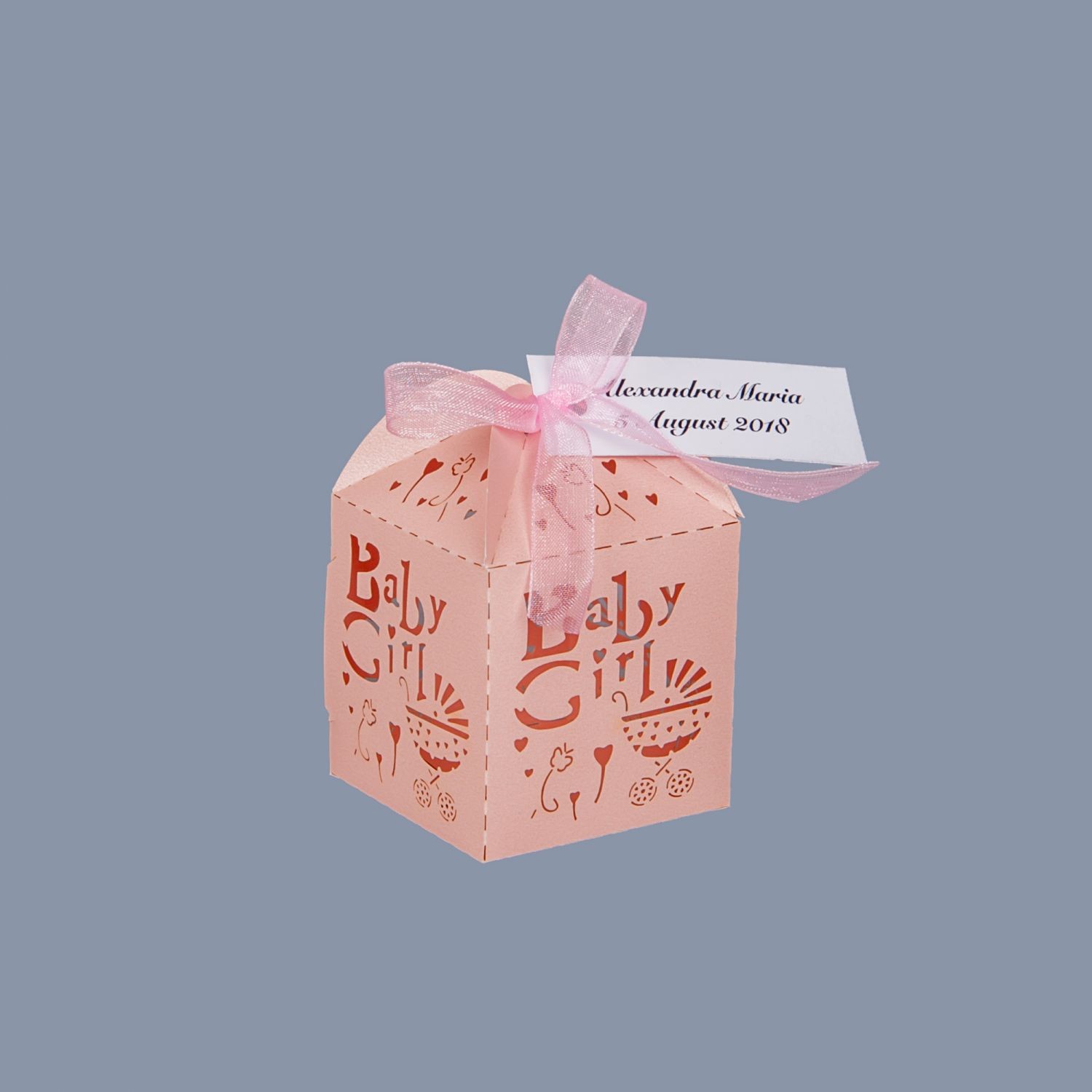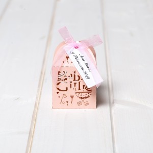Alege marturii cutiute cu text in engleza (Baby girl) si decupaj carucior, care pot fi daruite in orice sezon, indiferent de tema evenimentului.