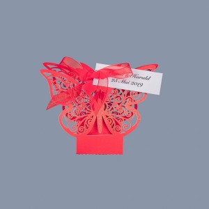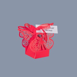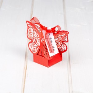 Combina aceste elemente si alege pentru invitatii prezenti la nunta marturii cutiute rosii cu model fluture.