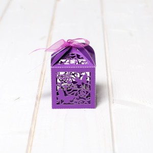 Dupa cununia religioasa, mirii pot oferi invitatilor in semn de multumire pentru prezenta lor la eveniment mici atentii sub forma de marturii dulci, iar cutiutele cu model laser cut fluture mov sunt o alegere deosebita.