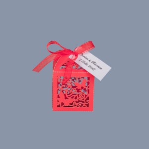 Dupa asamblare, marturiile se umple cu bomboane, apoi se leaga in varf cu o fundita rosie din organza. Cutiutele au baza patrata.
