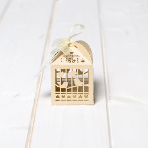 Disponibile in mai multe culori, cutiutele vrabii si inimi ivory sunt perfecte pentru o nunta in culori neutre, la care mireasa poarta o rochie de culoarea fildesului.