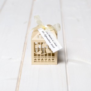 Pentru o nunta romantica in stil clasic, marturiile dulci oferite in cutiute cu design elegant (model inimi si vrabii ivory) reprezinta o alegere excelenta.
