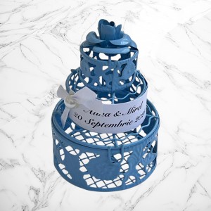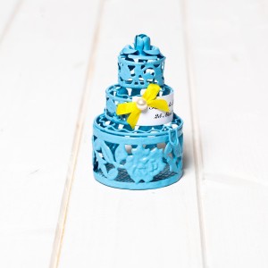 Pentru ca un eveniment important din zilele noastre nu este complet fara cadouri pentru invitati, mirii vor face o impresie deosebita oaspetilor daca le ofera marturii nunta tort bleu din sarma impletita.